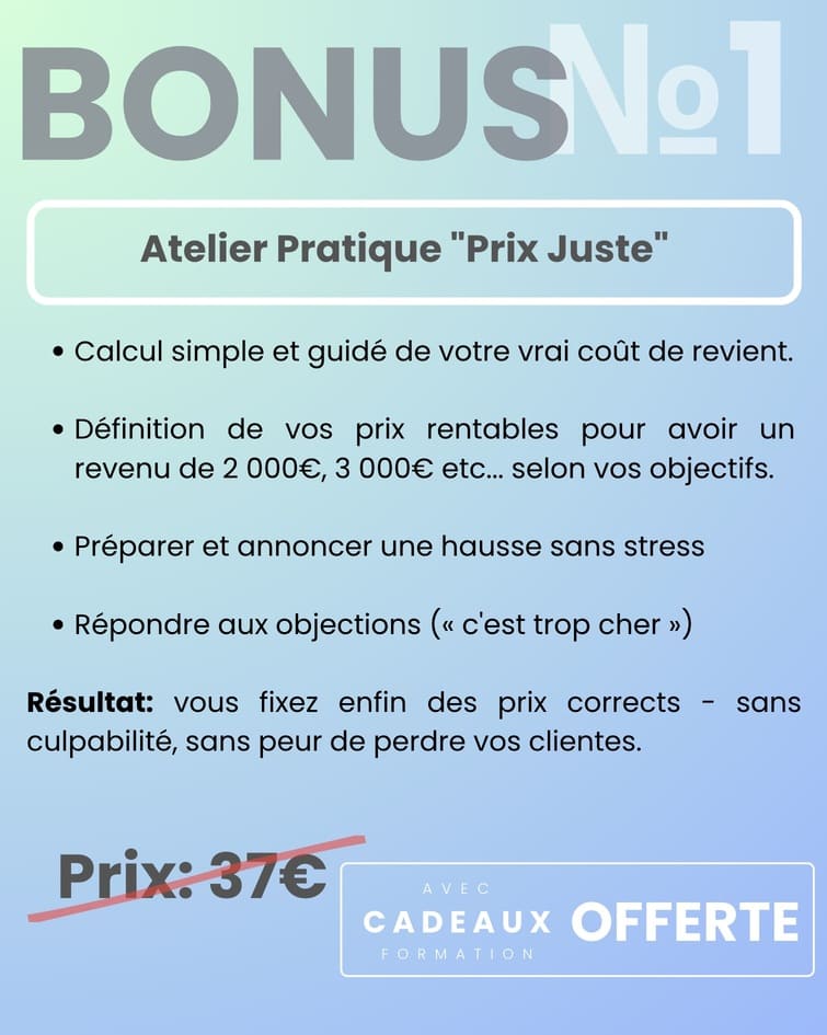 400 € – Formatrices *si vous êtes la formatrice, peu importe la branche du métier – vous devez passer par ce tarif